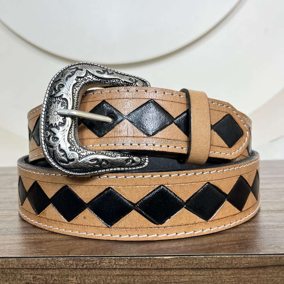 ชื่อผลิตภัณฑ์:เข็มขัดหนังแท้ลายตารางหมากรุก