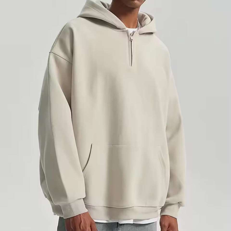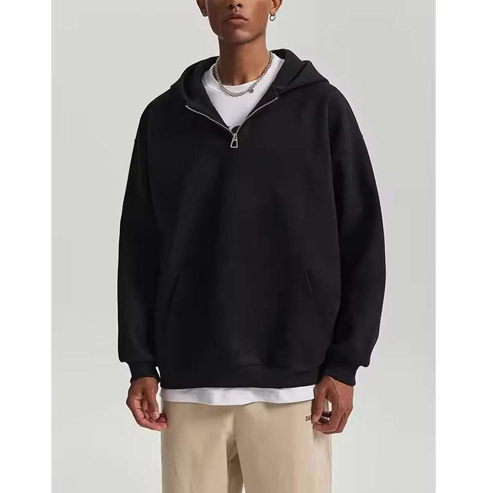 เสื้อฮู้ดครอปทรงโอเวอร์ไซส์ ซิปครึ่งตัว ผ้าฝ้ายเฟรนช์เทอร์รี่ น้ำหนัก 400-600 กรัม รุ่นใหม่ปี 2025 สำหรับผู้ชาย สีพื้น เหมาะสำหรับฤดูหนาว