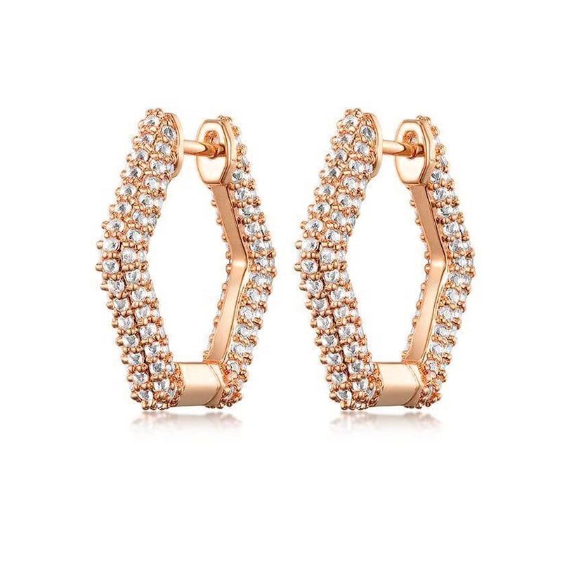 2025ใหม่ต่างหูเพชรทรงหกเหลี่ยมประดับเพชรขนาดกลางยอดนิยมและละเอียดอ่อน