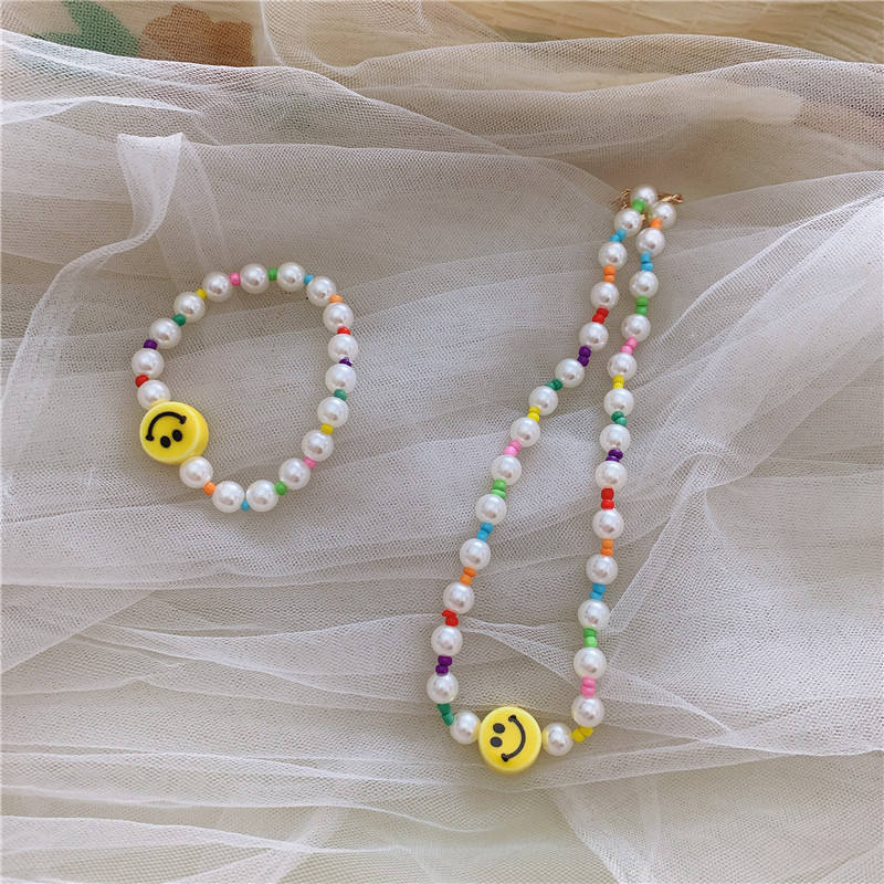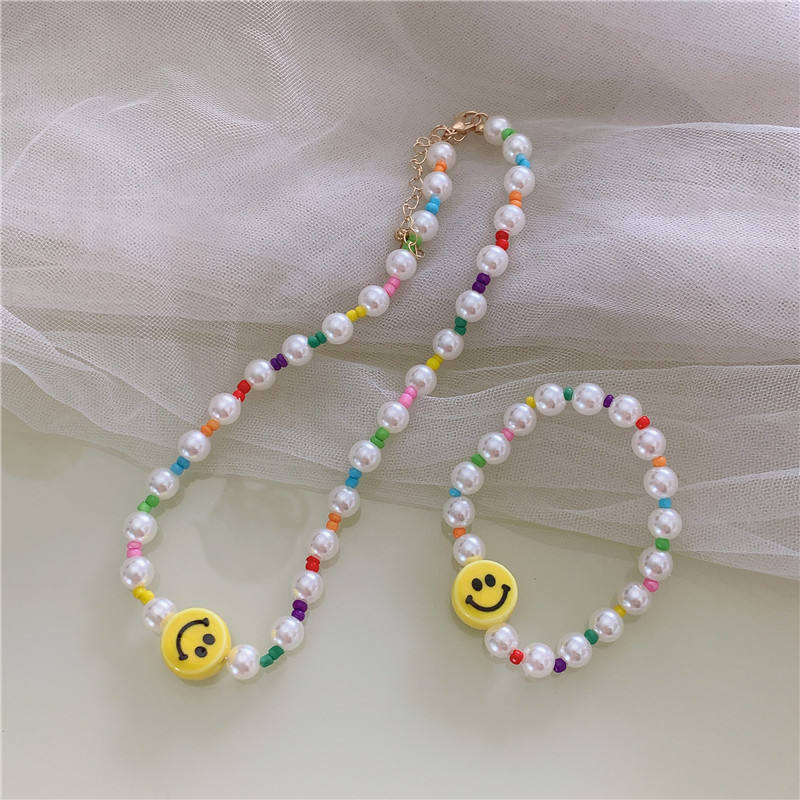 2025 New High Quality Ins Hot Sale Diy Colorful Seed Beads Choker Cute Smile Face Pearl Beaded Necklace for Women Girls