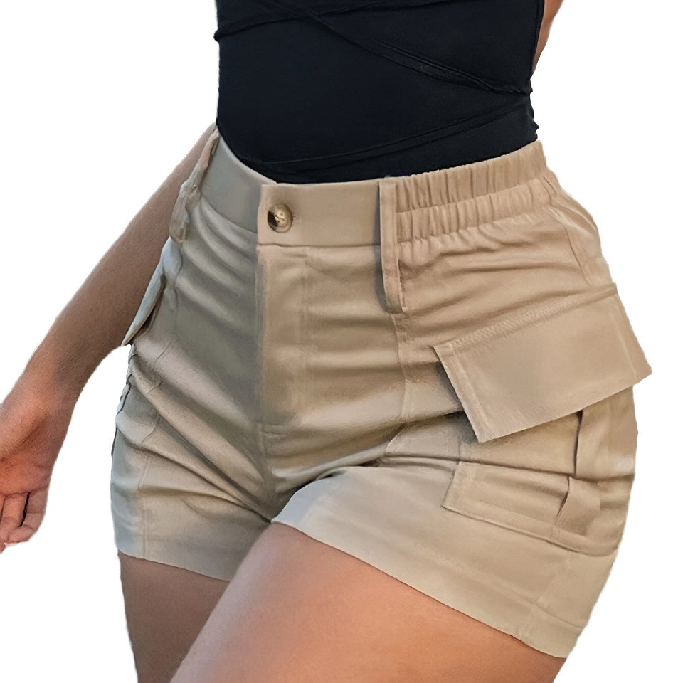 กางเกงขาสั้นคาร์โก้เอวสูงติดกระดุมสำหรับผู้หญิง รุ่นใหม่ปี 2025 สไตล์ลำลอง มีกระเป๋าหลายช่อง นำเข้าจากต่างประเทศ