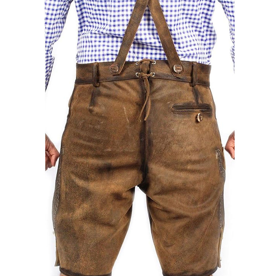 กางเกงหนังทรงตรงเข้ารูปคุณภาพพรีเมียมทนทาน รุ่นใหม่สำหรับฤดูใบไม้ร่วงและฤดูหนาว เอวสูง สไตล์เยอรมันบาวาเรียน สำหรับผู้ชาย ความยาวระดับเข่า