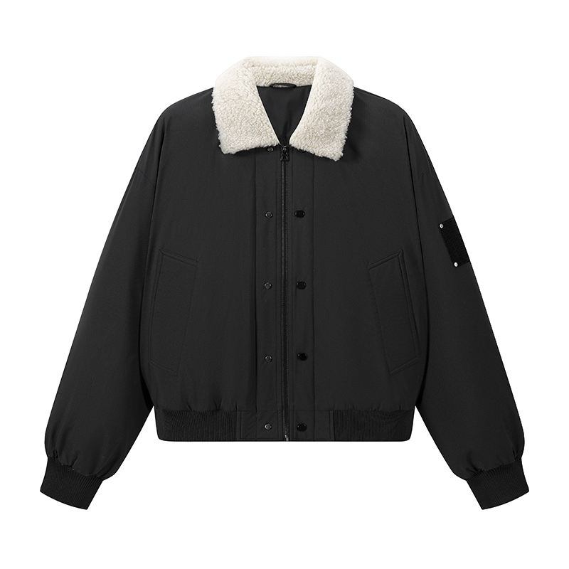 เสื้อแจ็คเก็ตขนเป็ดหนาแบบใหม่ปี 2025 สไตล์ญี่ปุ่น แบบยูนิเซ็กส์สำหรับคู่รัก ทรงหลวมสบายๆ พร้อมปกขนแกะ