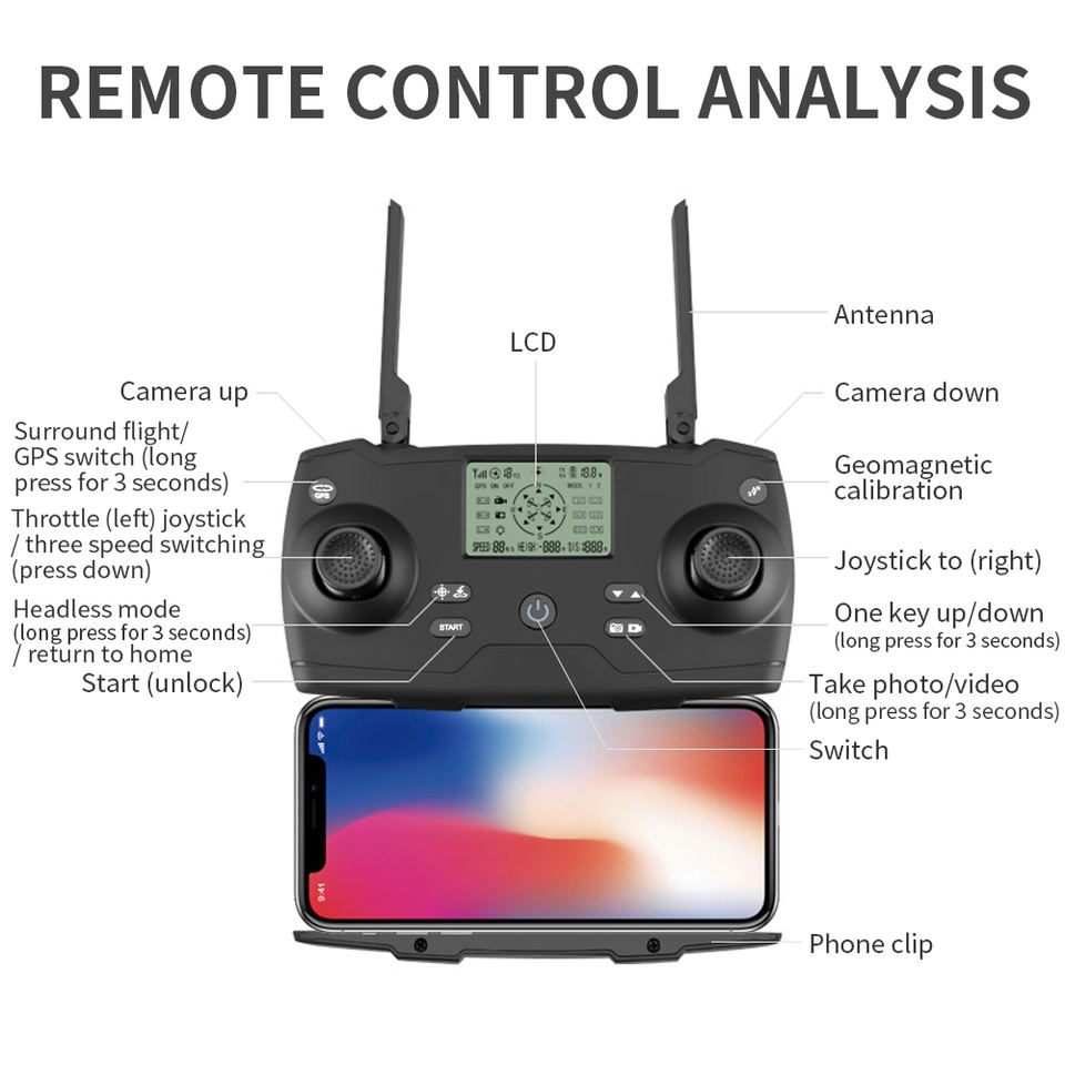 โหมด Headless, ความสูงโหมด Hold, 3D ดูโหมด, กล้องคู่, พับได้, การควบคุมด้วยเสียง, One Key Takeoff/Landing, แอปควบคุม, 3D พลิก, พร้อมกล้องฟังก์ชัน