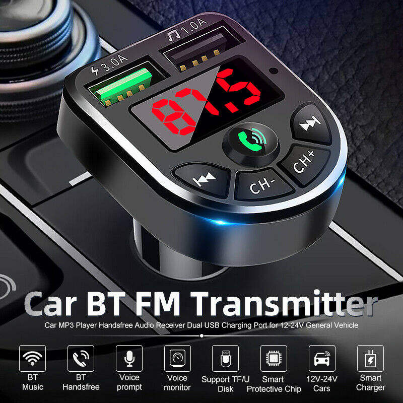ชุดอุปกรณ์ส่งสัญญาณ FM ในรถยนต์ ปี 2025 รุ่นใหม่ พร้อมไฟ LED บลูทูธ 5.0 ช่องเสียบ USB คู่ QC2.0 3.1A สำหรับชาร์จในรถยนต์ เครื่องเล่น MP3 พร้อมหน้าจอ LCD รองรับการใช้งานกับ TF/U Disk