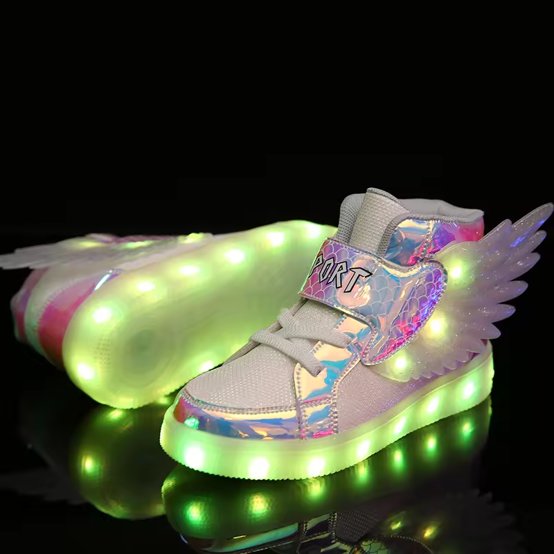 รองเท้ากีฬาเด็ก LED รุ่นใหม่ ปี 2025 สำหรับเด็กชายและเด็กหญิง ชาร์จ USB ไฟกระพริบวิบวับ รองเท้าผ้าใบลำลองสำหรับเด็ก