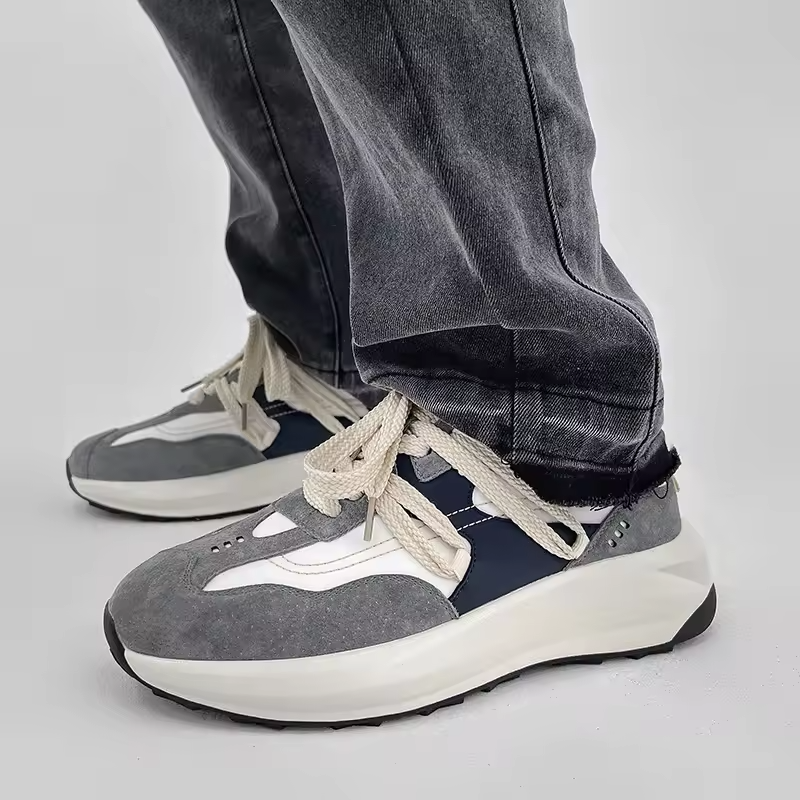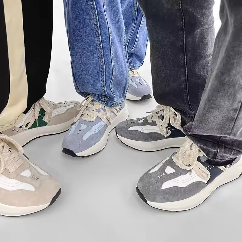 รองเท้าผ้าใบหนังดีไซน์เนอร์สไตล์เรโทรสีขาวรุ่นใหม่ปี 2025 รองเท้าลำลองสำหรับผู้ชาย รองเท้าผ้าใบดีไซน์เนอร์