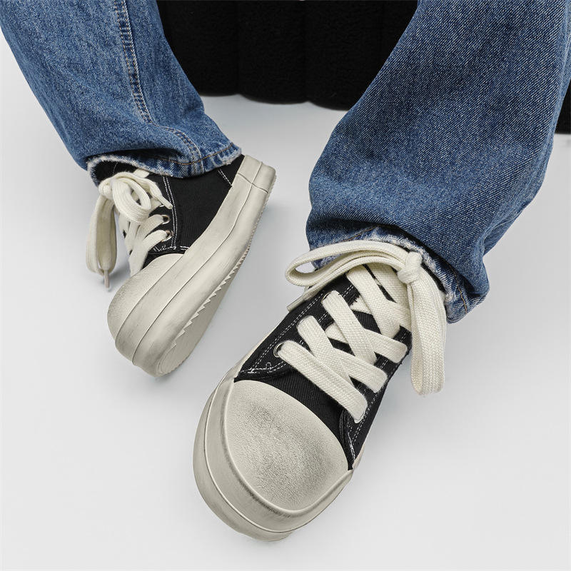 รองเท้ากีฬาผ้าแคนวาสแบบลำลองข้อต่ำสำหรับผู้ชายใหม่2025มีพื้นรองเท้าหนาและกระดานเพิ่มความสูง