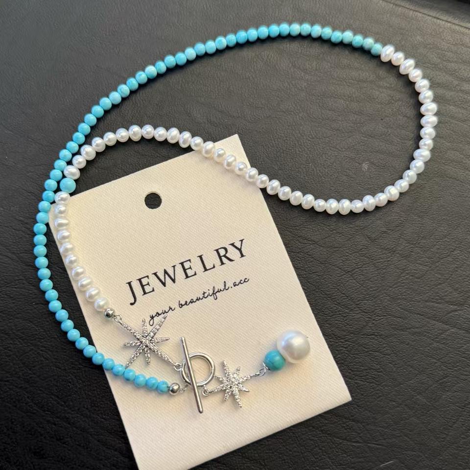 สร้อยคอไข่มุกธรรมชาติทรงดาวครึ่งวงประดับคอ ดีไซน์หรูหรา ทันสมัย สำหรับปีใหม่ 2025