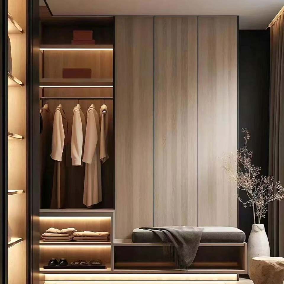 ตู้เสื้อผ้าไม้ห้องเก็บเสื้อคลุมปรับแต่งได้ใหม่2025โรงงานผลิตจากจีนหรูหราขายส่ง
