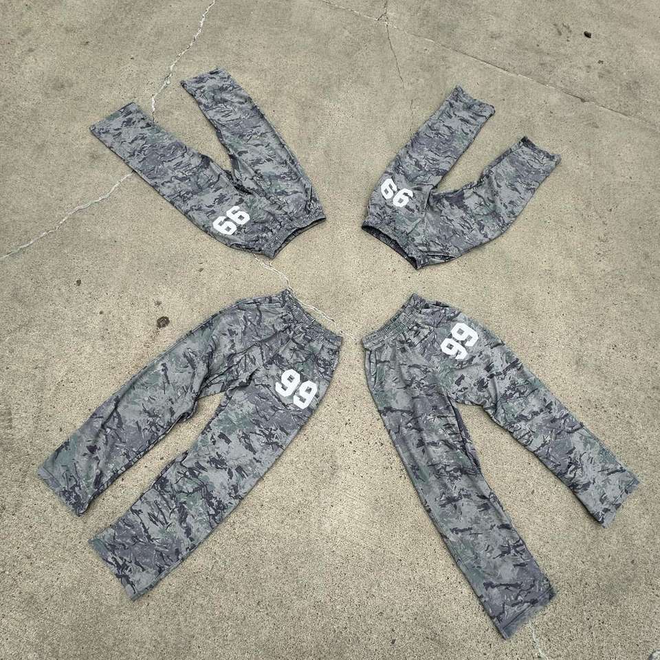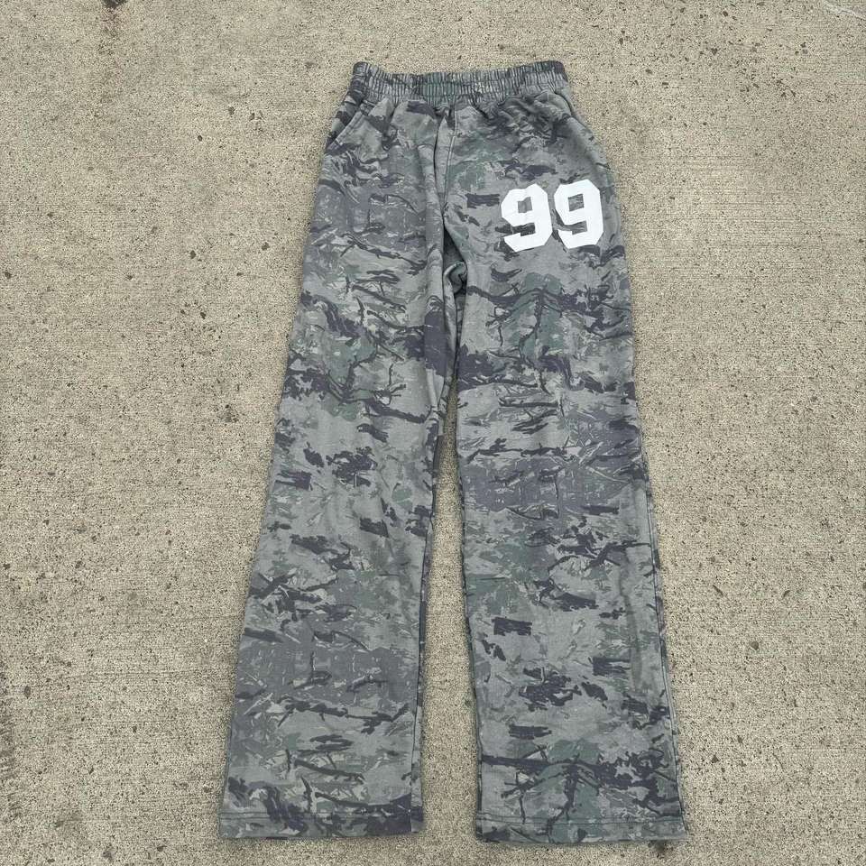 กางเกงวอร์มผ้าฝ้าย100% ตามสั่งของผู้ชายเอวสูงปานกลางพิมพ์ลายพรางสไตล์วินเทจแบบลำลองแนววินเทจ2025ใหม่