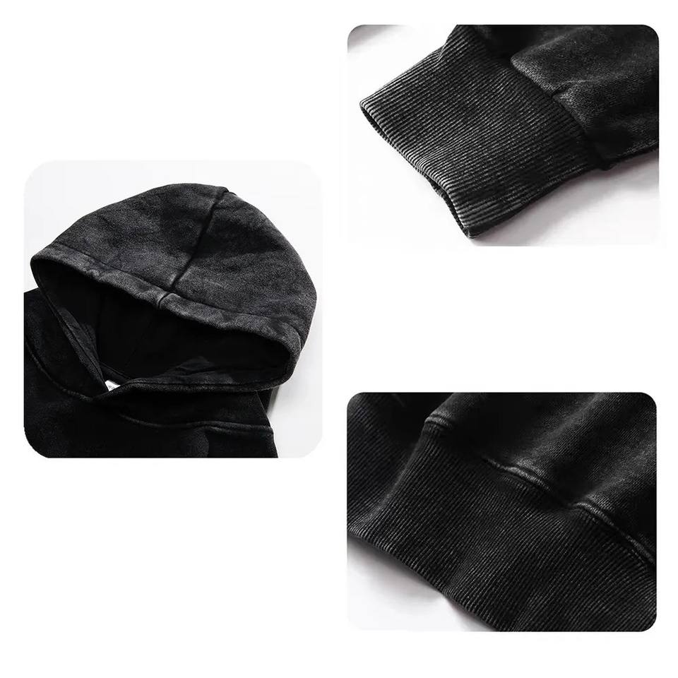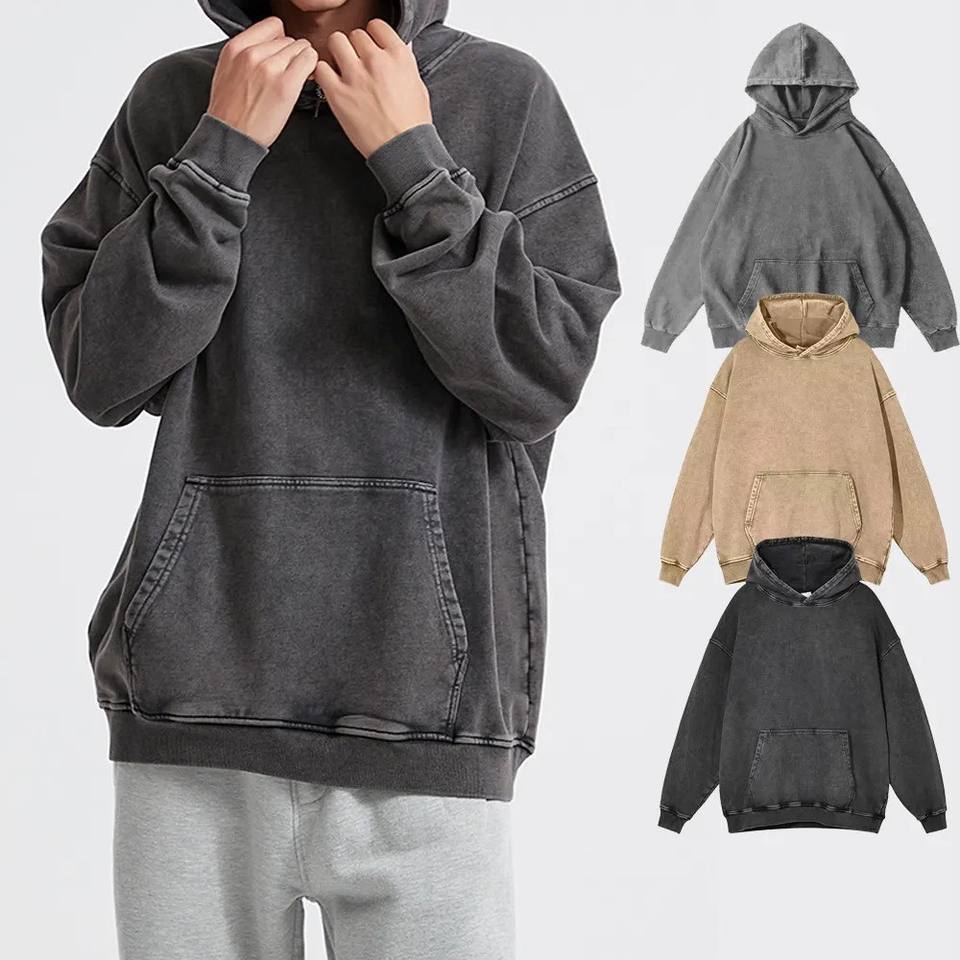 เสื้อฮู้ดดี้ปักลายสำหรับผู้ชายปี 2025 แบบย้อมสีเอซิด ทรงหลวม ผ้าฟลีซ ไม่มีโลโก้ สีดำ ผ้าฝ้าย 100% เนื้อผ้าอุ่น เป็นมิตรกับสิ่งแวดล้อม เหมาะสำหรับฤดูใบไม้ร่วง