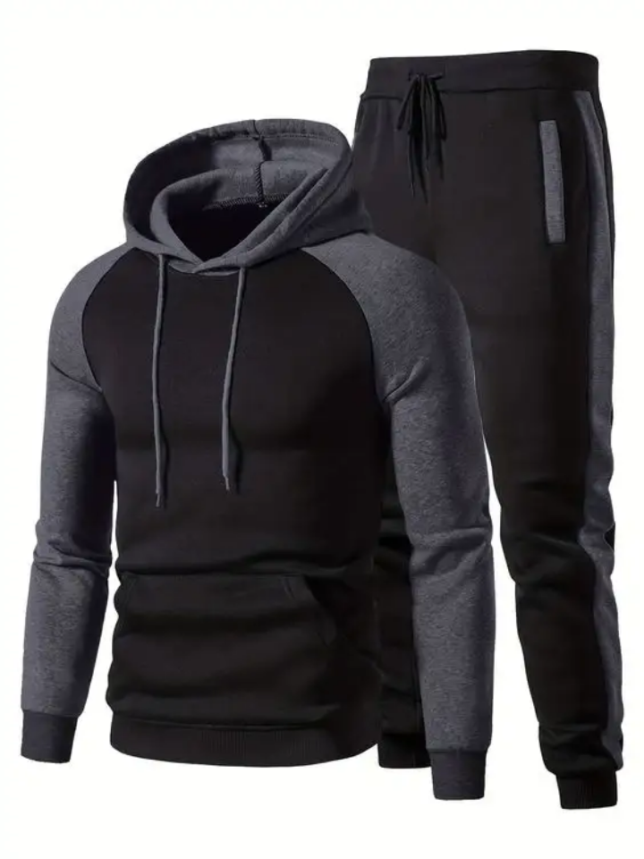 ชุดวิ่งสองชิ้นเสื้อฮู้ดคอปกสีล้วนของผู้ชายชุดออกกำลังกาย2025ใหม่