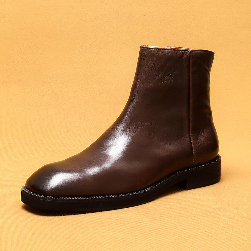 รองเท้าบูทข้อเท้าหนังม้าแท้รุ่นใหม่ปี 2025 สำหรับผู้ชาย ซักได้ ผลิตด้วยมือแบบ Goodyear สไตล์เรโทร แฟชั่น Amekaki รองเท้าทำงานแบบผูกเชือก
