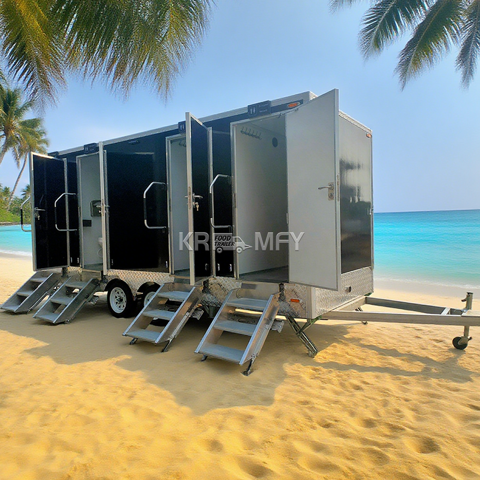 รถพ่วงห้องน้ำเคลื่อนที่หรูหราสำหรับ 10 คน รุ่นใหม่ ปี 2025 สำหรับใช้งานกลางแจ้ง ผลิตในจีน