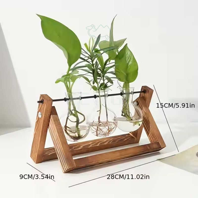Product name:Plant Terrarium Wooden Stand 3 Bulb Vase
