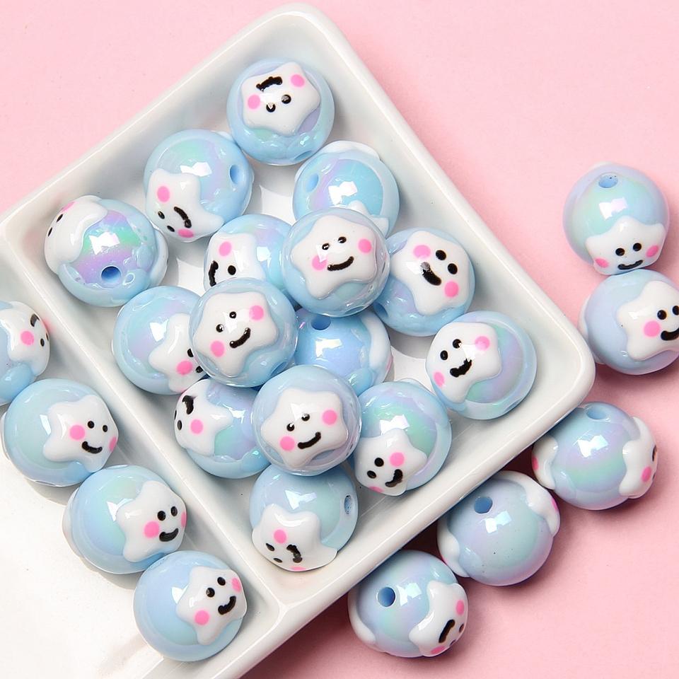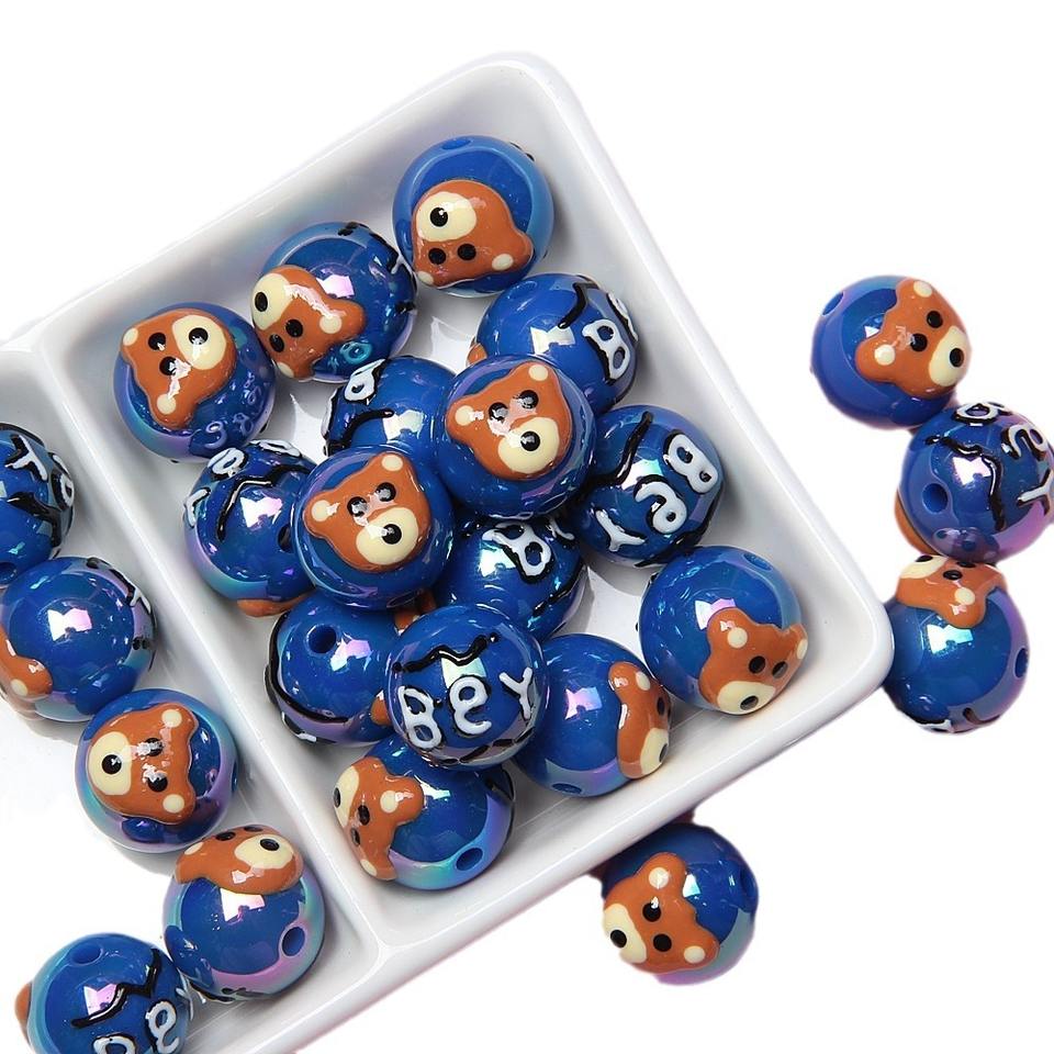 2025ใหม่ลูกปัดอะคริลิครูปหมีการ์ตูนน่ารักวาดด้วยมือสำหรับกำไลข้อมือ DIY เครื่องประดับโซ่คล้องโทรศัพท์มือถือ