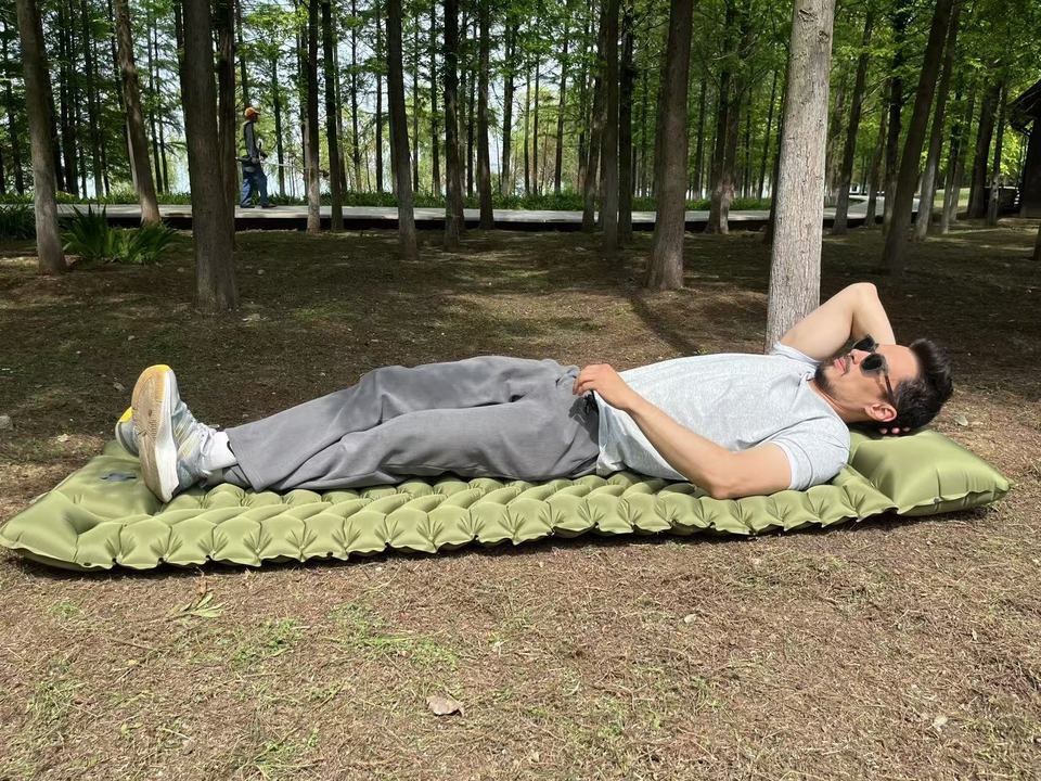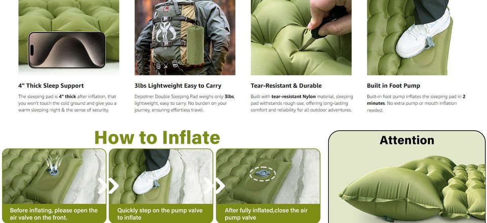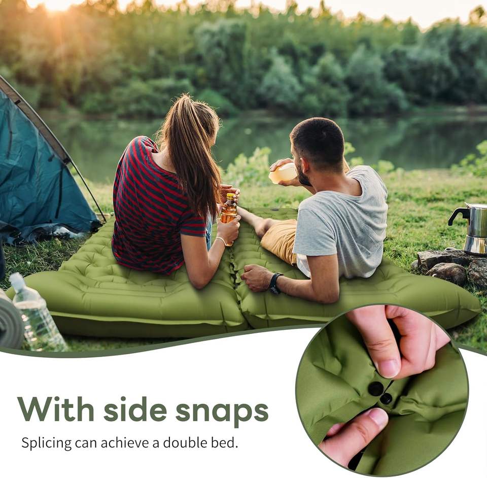 แผ่นรองนอนเป่าลมแบบพกพาสำหรับ 1 คน รุ่นใหม่ปี 2025 น้ำหนักเบา กันน้ำ ใช้ได้ทุกฤดู พร้อมปั๊มลมในตัว สำหรับตั้งแคมป์