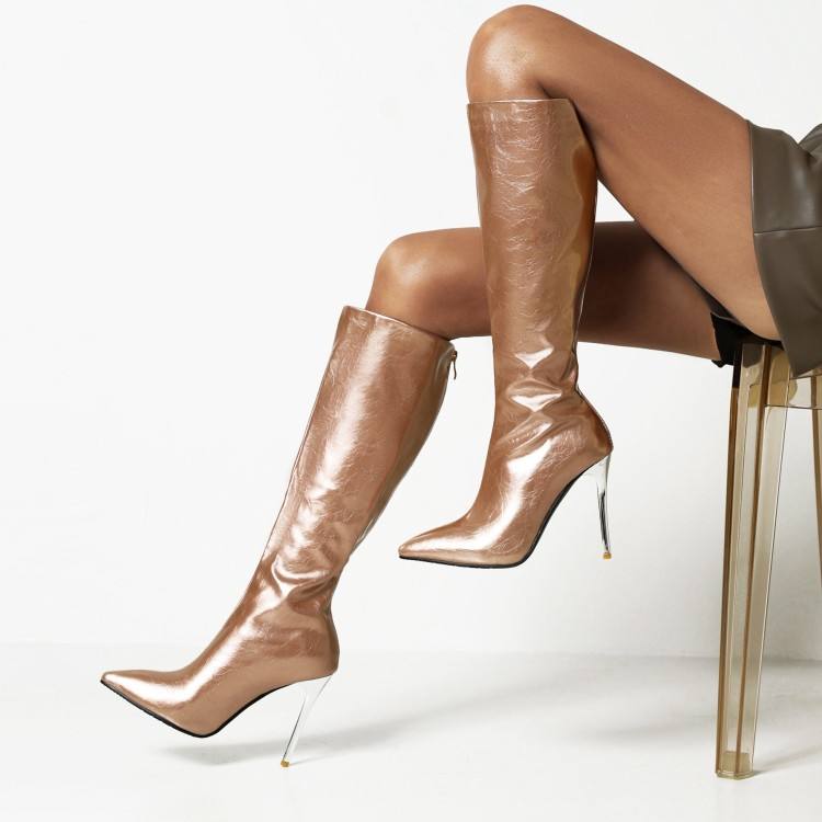รองเท้าบูทส้นเข็มสูงถึงเข่าแบบใหม่ปี 2025 ดีไซน์สั่งทำพิเศษ หลายสี สำหรับผู้หญิง ฤดูใบไม้ร่วง