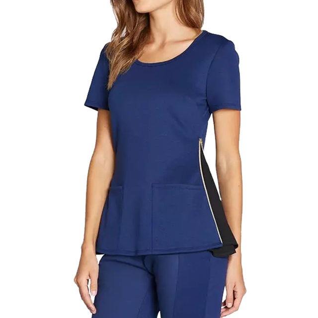 ชุดพยาบาลแขนสั้นแบบยืดได้ 4 ทิศทาง สไตล์ใหม่ปี 2025 ชุดสครับผู้หญิงคอไขว้ทันสมัย ผลิตจากผ้าสแปนเด็กซ์/โพลีเอสเตอร์ สำหรับโรงพยาบาล