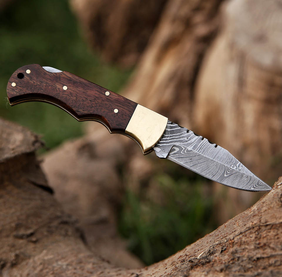 มีดพกเหล็กเยอรมันดามัสกัส2025มีเอกลักษณ์พับได้มีด EDC สำหรับการอยู่รอดขายส่งเกรด DIY
