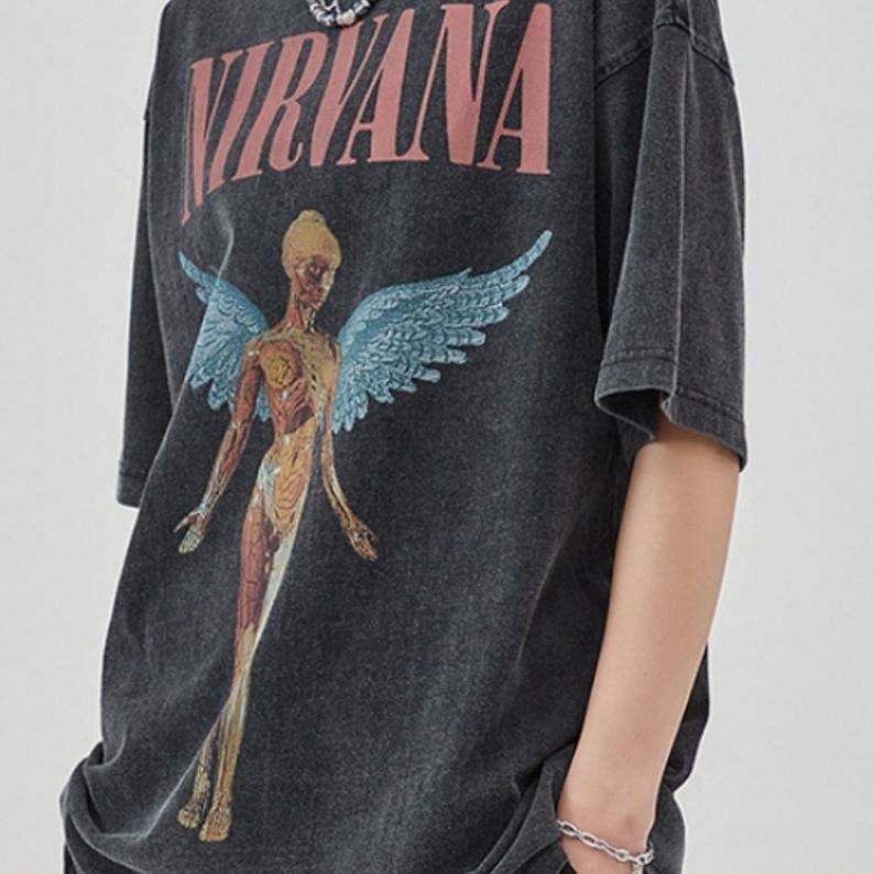 เสื้อยืดแนวร็อคสไตล์ใหม่ย้อนยุคสำหรับผู้ชายพิมพ์ลายสไตล์ย้อนยุคแนวสตรีทไฮสตรีทสไตล์ใหม่