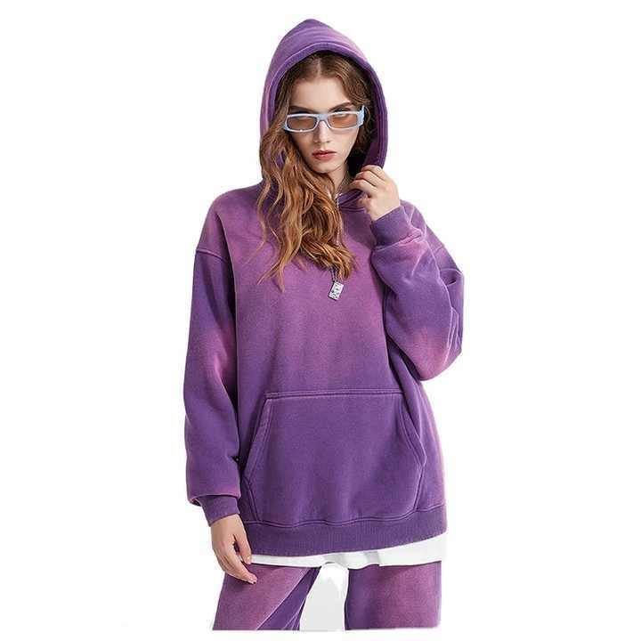 เสื้อมีฮู้ดโอเวอร์ไซส์สไตล์วินเทจสำหรับผู้หญิงผ้าคอตตอนซักกรดมีฮู้ดผ้าคอตตอน100% ย้อมสีสำหรับตกแต่งป้ายฤดูหนาว2025