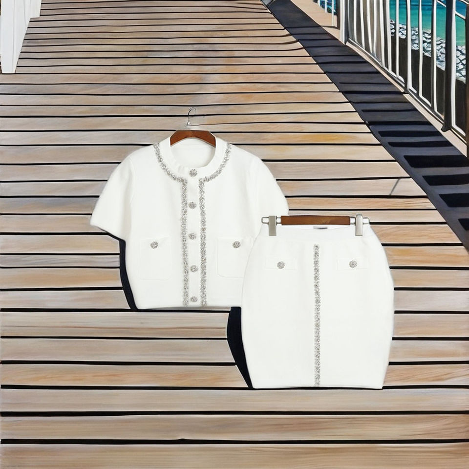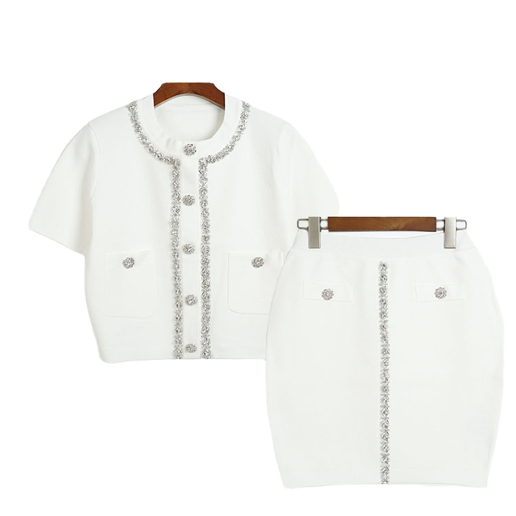 ชุดเซ็ตไหมพรมปักลาย 2 ชิ้น สไตล์ใหม่ปี 2025 สำหรับผู้หญิง กระโปรงสั้นพิมพ์ลายประดับคริสตัล สไตล์ Y2K ชุดลำลอง 2 ชิ้น เสื้อสเวตเตอร์สีพื้น