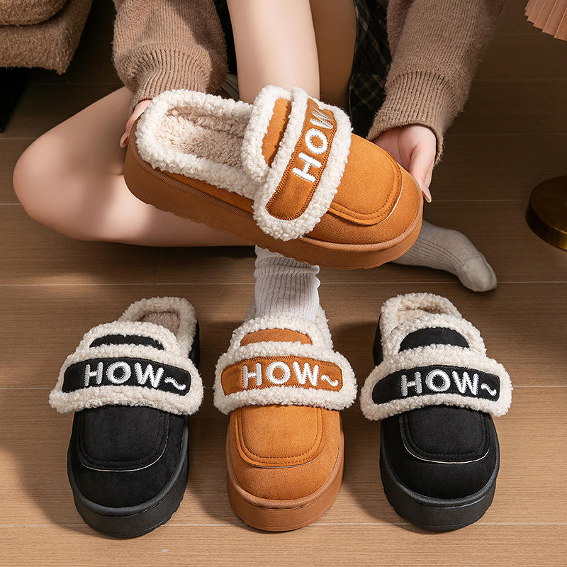 รองเท้าแตะสำหรับผู้หญิงแบบใหม่ปี 2025 บุขนแกะสำหรับฤดูหนาว ใช้ในบ้าน พร้อมแถบเวลโคร สวมใส่สบายสำหรับใช้ในร่ม