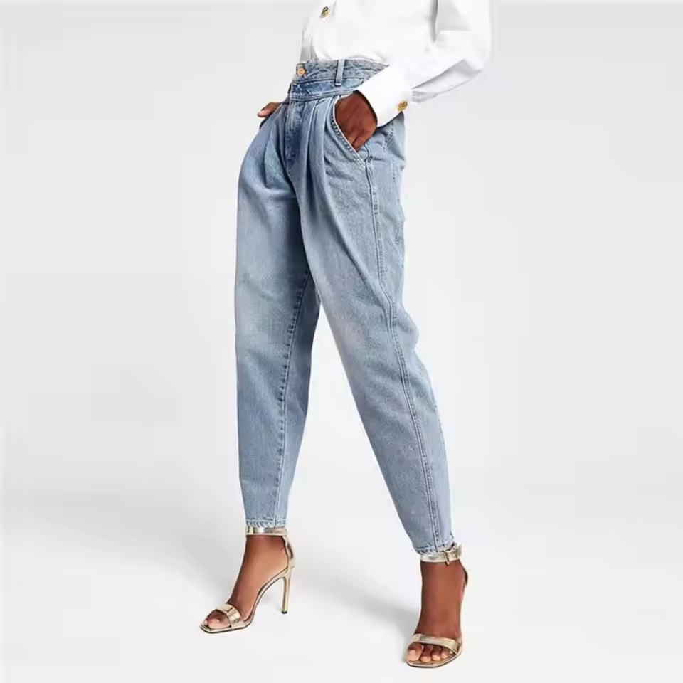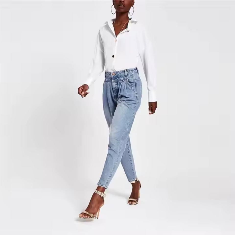 กางเกงยีนส์ผู้หญิงสไตล์ใหม่ปี 2025 ระบายอากาศได้ดี สวมใส่สบาย สีฟ้าอ่อน คลาสสิก ปรับแต่งได้