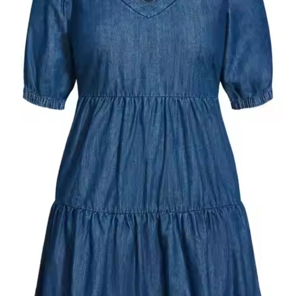 เดรสผู้หญิงไซส์ใหญ่สไตล์ใหม่ปี 2025 แบบเซ็กซี่ ลายเรียบ สำหรับใส่ทำงาน แขนพองทรงหลวม