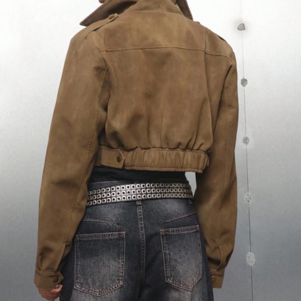 2025 New Stylish Suede Jacket with Big Pockets Women Suede Bomber Jackets