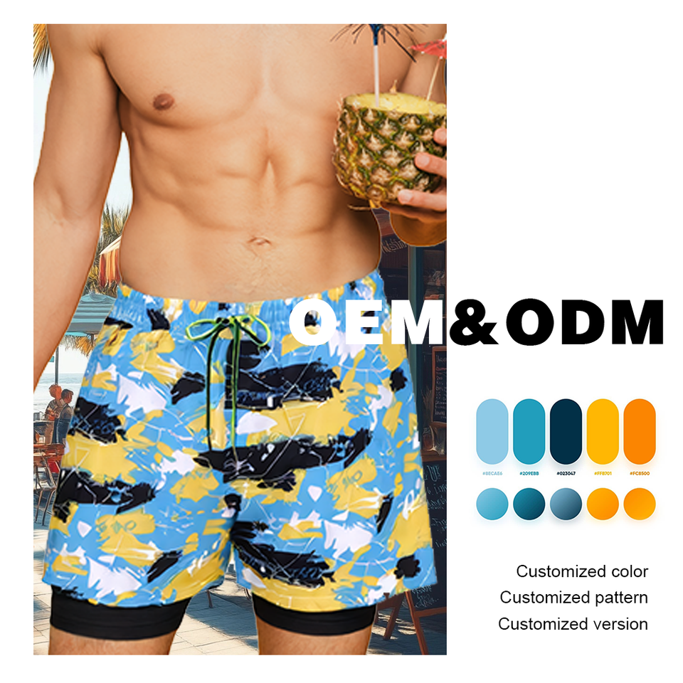 กางเกงว่ายน้ำขาสั้นผู้ชายขาสั้นมีกระเป๋าพิมพ์ลายดิจิตอลแบบลำลองสไตล์อเมริกัน3D ฤดูร้อน2025