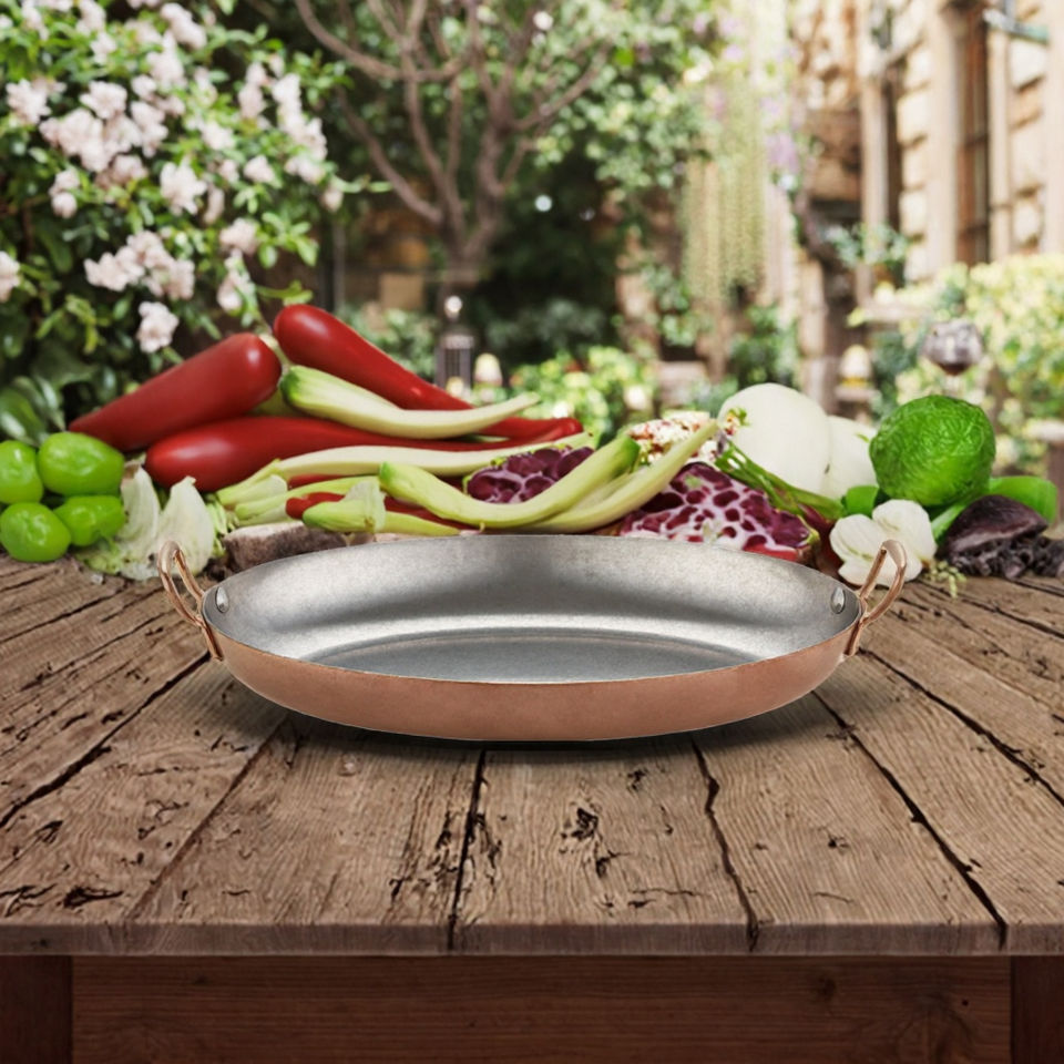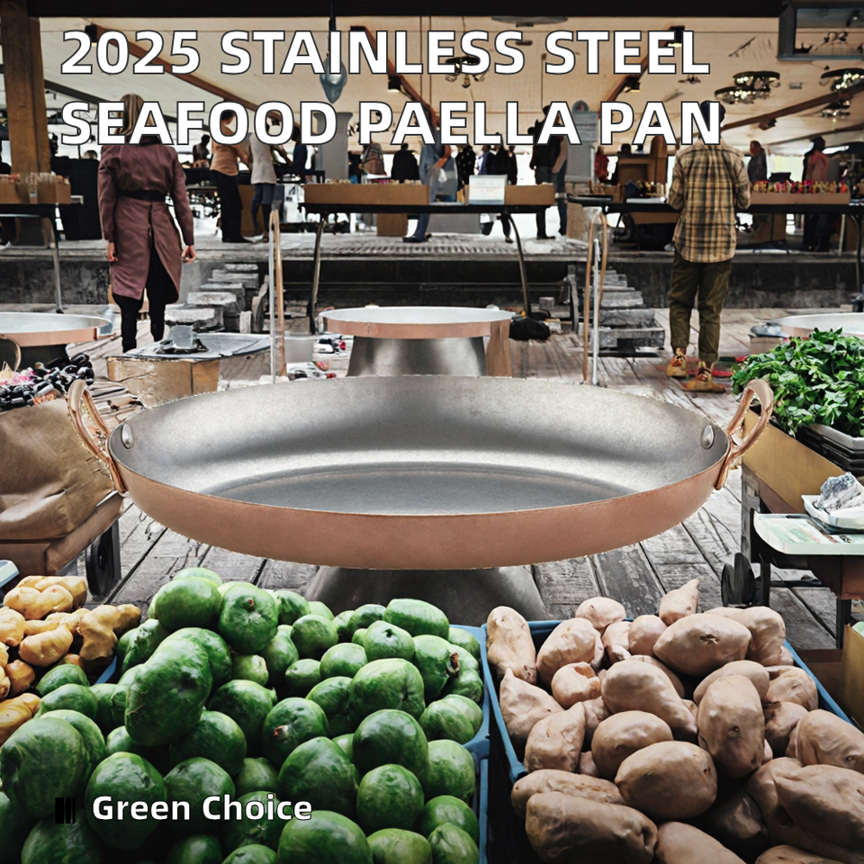 2025ใหม่หม้อทำอาหารทะเลจานโลหะขัดมันดีไซน์ทันสมัยกระทะ Paella ทำจากสแตนเลสแบบหูสองชั้นสำหรับร้านอาหาร
