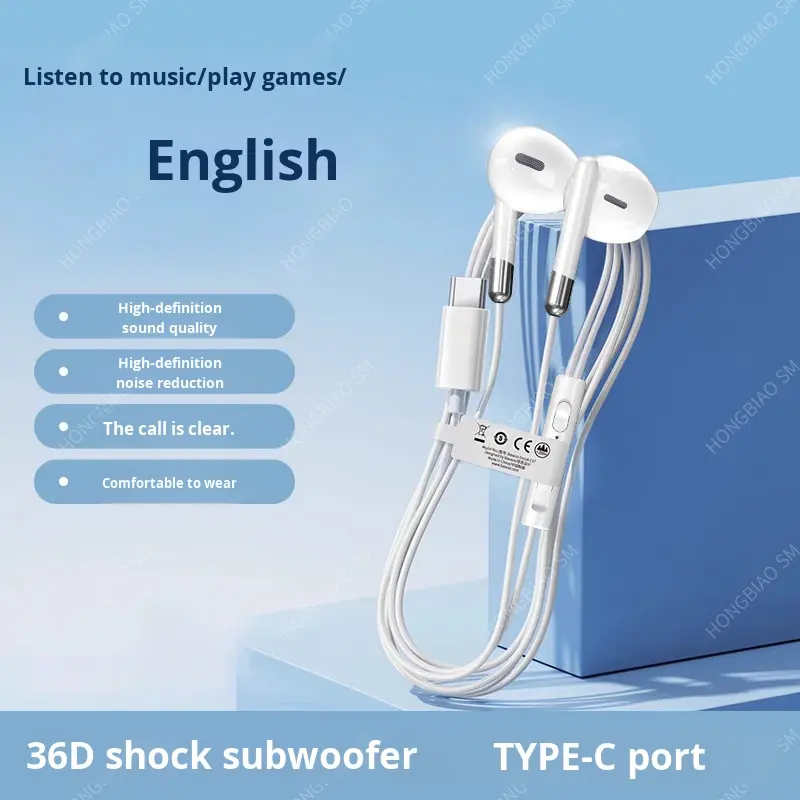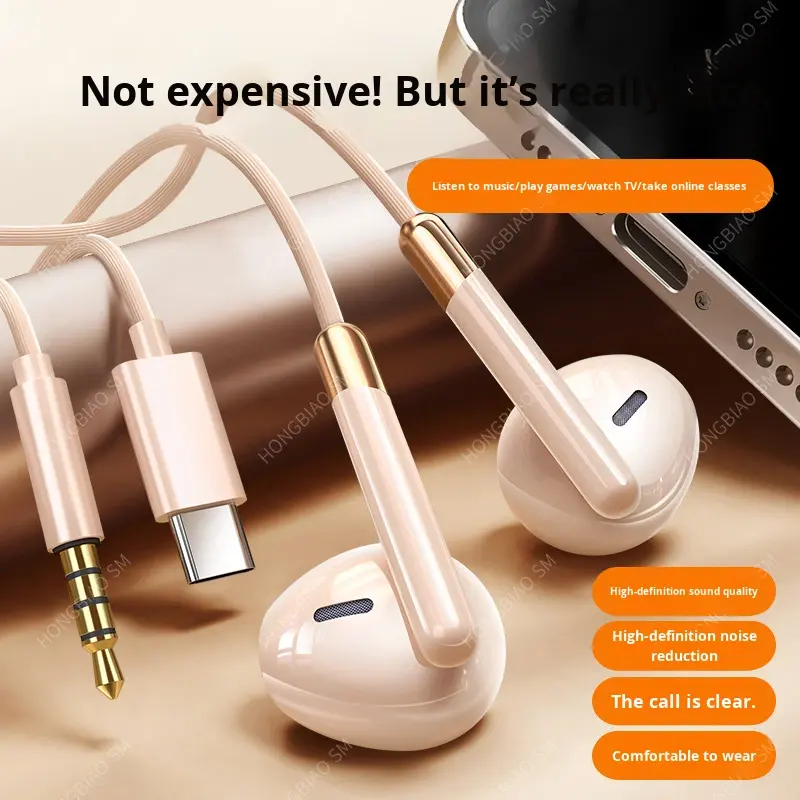 หูฟังแบบมีสายดิจิตอลถอดรหัส TYPE-C รุ่นใหม่ ปี 2025 คุณภาพสูง แบบใส่ในหู เสียง HiFi ซิลิโคนกึ่งโลหะ สายยาว 1.2 เมตร ตัดเสียงรบกวน