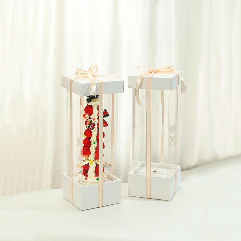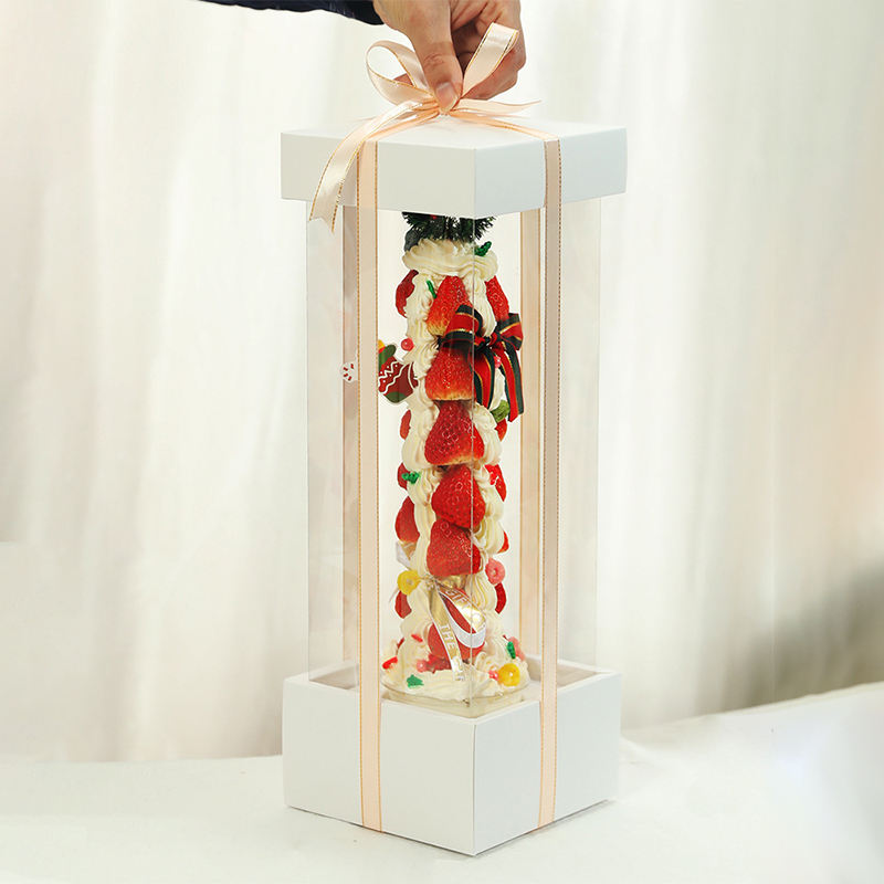 2025 New Transparent Strawberry Tart Christmas 42cm Heightened Cake Dessert Packaging Paper Box