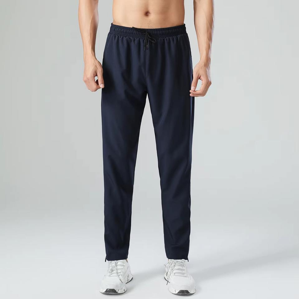 กางเกงผ้าไหมน้ำแข็งผู้ชายเทรนด์ใหม่2025กางเกงผู้ชายลำลองกีฬาฟิตเนสยืดหยุ่นบางมีซิป