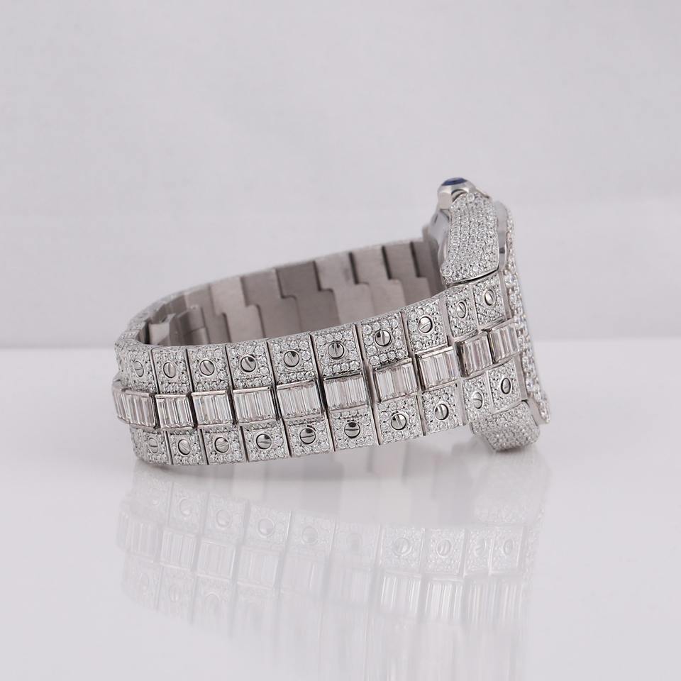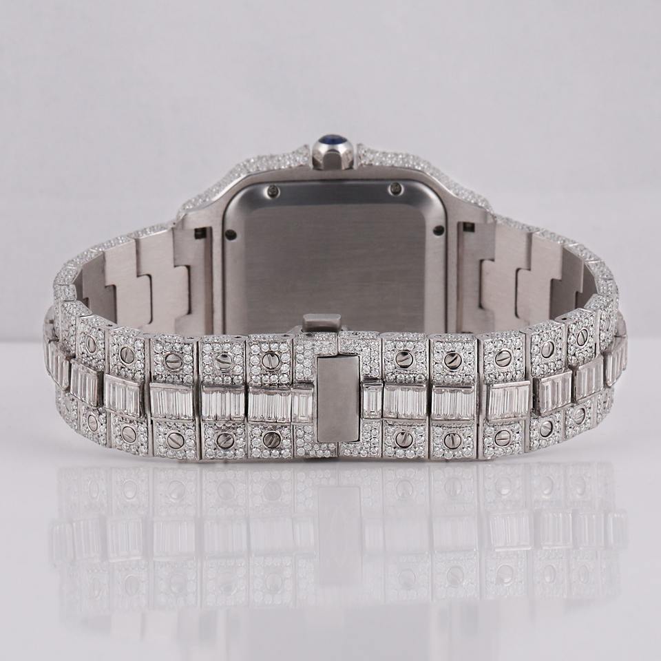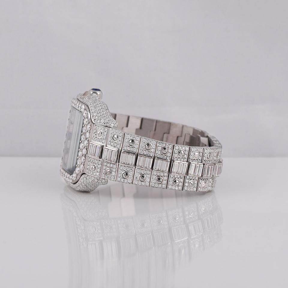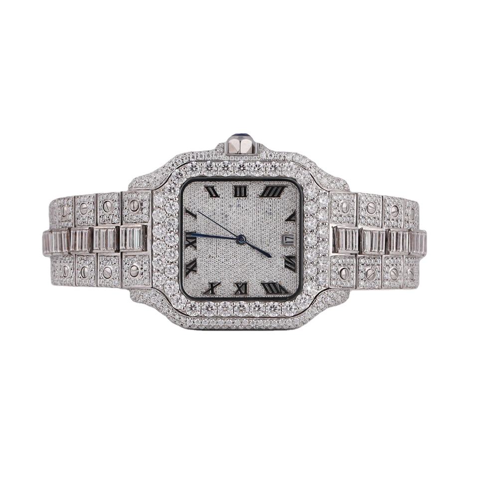 2025นาฬิกาโมสซาไนต์สีเงินเทรนด์ใหม่นาฬิกาเครื่องประดับทรงกลมประดับเพชรแนวฮิปฮอปจากอินเดีย