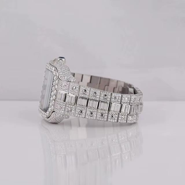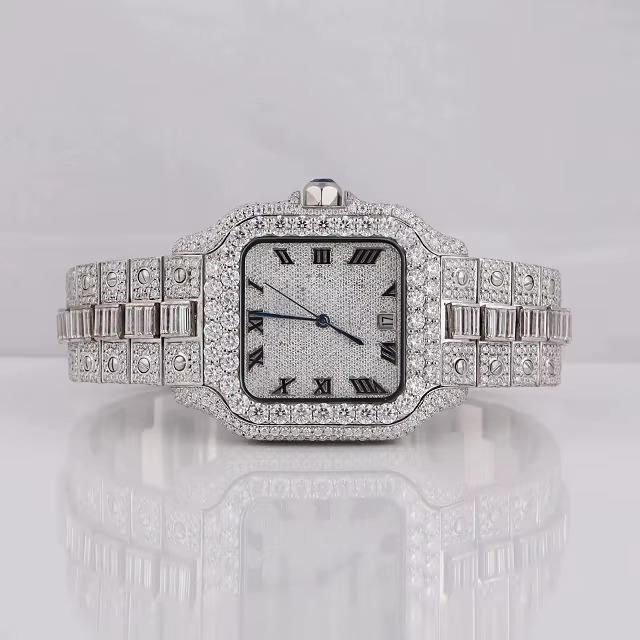 นาฬิกาข้อมือสแตนเลสสตีลฮิปฮอปทรงสี่เหลี่ยมหรูหราประดับเพชรโมอิสซาไนต์สีเงินเทรนด์ใหม่ปี 2025 พร้อมหน้าปัดควอตซ์แบบเข็มชี้ และเครื่องประดับขายดีอันดับหนึ่งจากอินเดีย