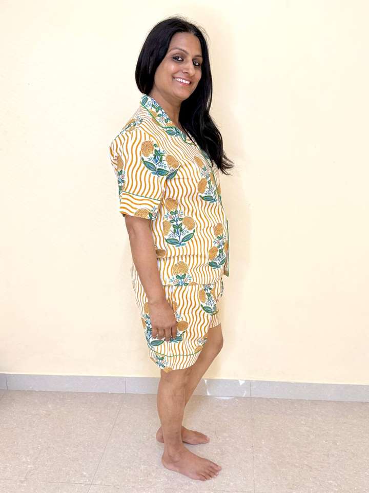 ชุดนอนผ้าฝ้ายแท้2ชิ้นสำหรับผู้หญิงชุดใส่นอนชุดอยู่บ้านแบบติดกระดุมใหม่2025