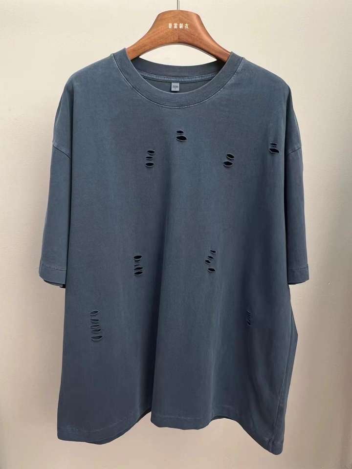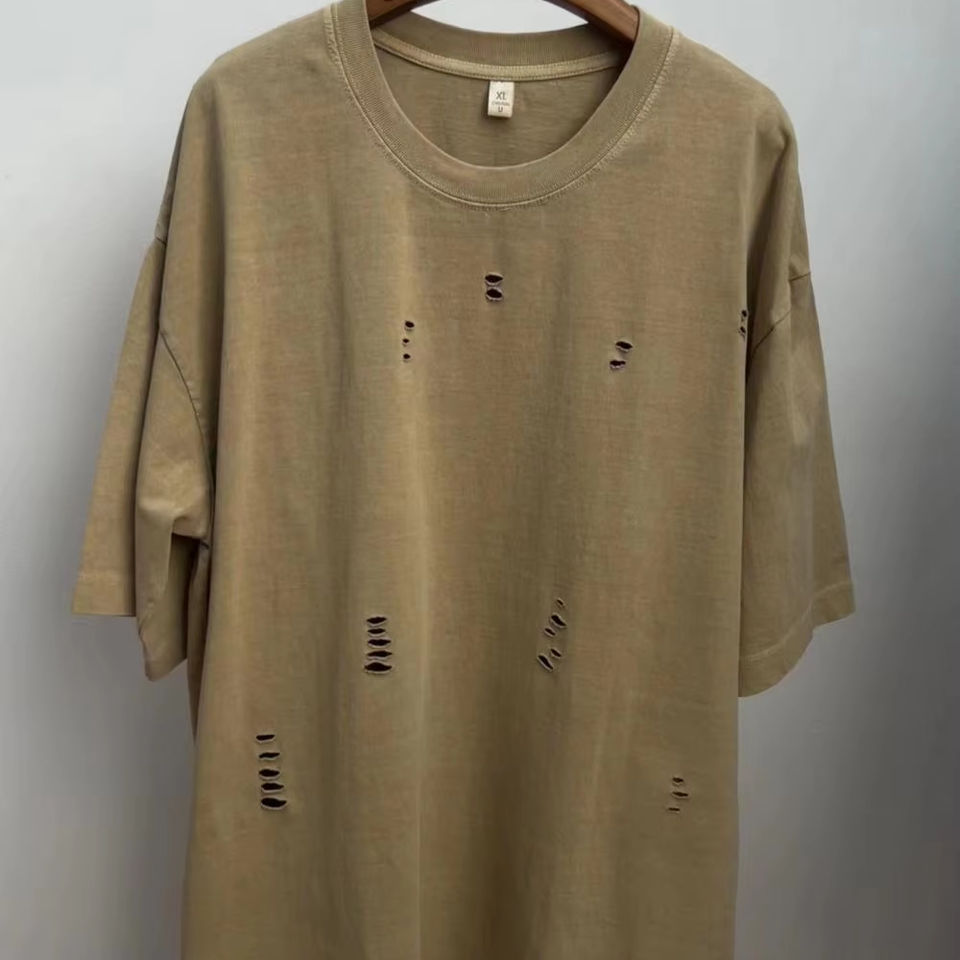 เสื้อยืด2025ใหม่ลายฮวงจุ้ยวินเทจสำหรับผู้ชายและผู้หญิงเสื้อยืดดีไซน์แบบผ่าหน้าอกเสื้อแขนสั้น100ทรงหลวมแนวแฟชั่น