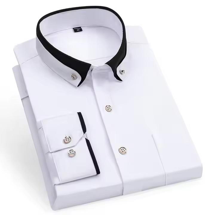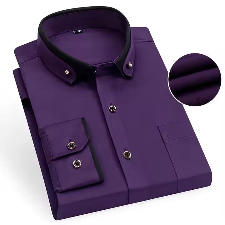 เสื้อเชิ้ตผู้ชายคอตั้งแขนยาวผ้าฝ้ายสีพื้นแบบทางการสำหรับธุรกิจ ไซส์ XL รุ่นใหม่ปี 2025 ขายส่งแบบกำหนดเองได้