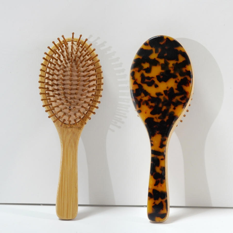 แปรงหวีผมแบบเข็มด้ามไม้ไผ่สำหรับใช้ในบ้านหวีป้องกันไฟฟ้าสถิตย์เบาะอากาศทรงรีรีแบบ2025ใหม่ออกแบบได้ตามที่ต้องการ