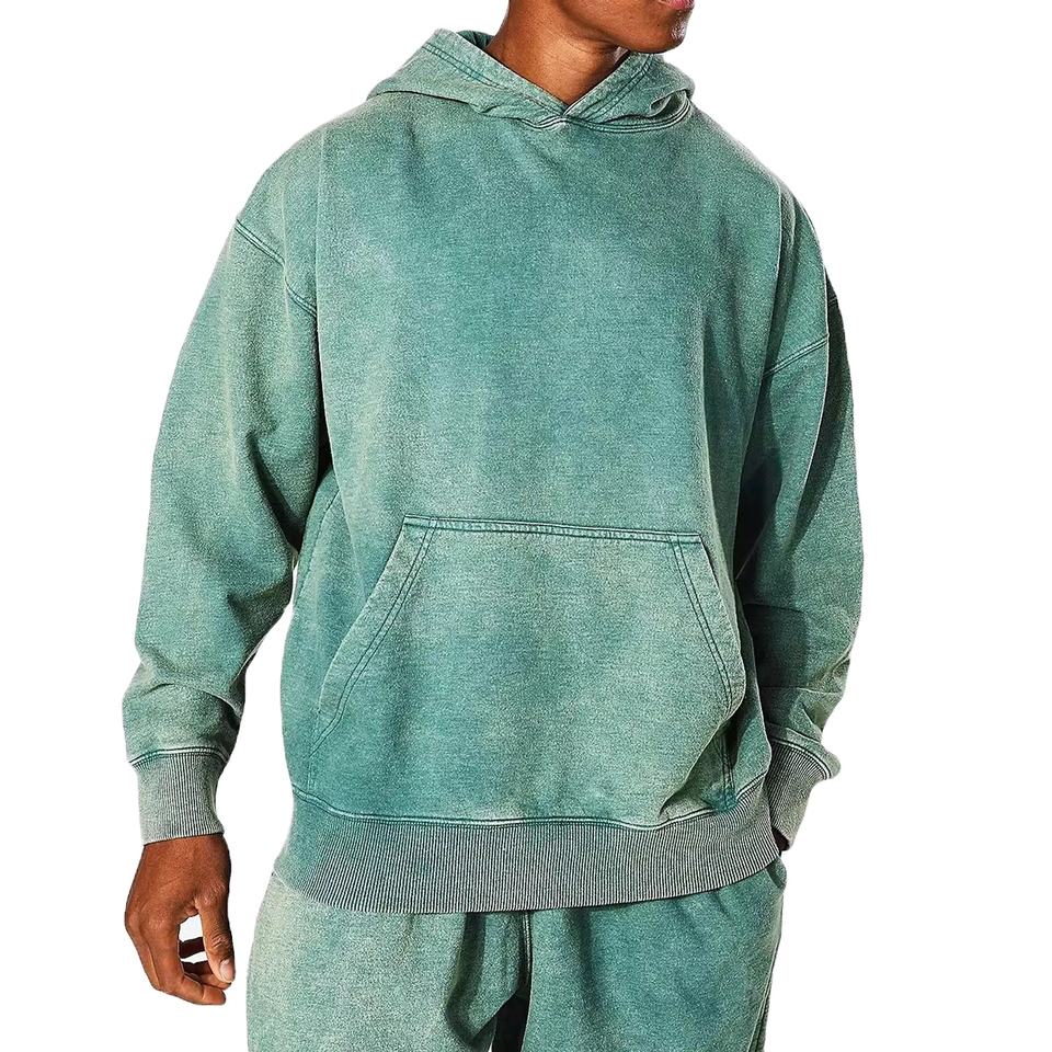 เสื้อฮู้ดดี้โอเวอร์ไซส์ทรงหนา ผ้าเฟรนช์เทอร์รี่ ย้อมสีแบบแอซิดวอช สองชั้น ปักลายตามสั่งสำหรับผู้ชาย ขายส่งแบบใหม่ประจำปี 2025