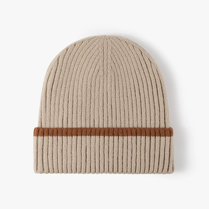 หมวกบีนนี่ผ้าถักหนาสำหรับผู้ชายและผู้หญิงหมวกแจ็คการ์ดไร้ขอบสำหรับฤดูหนาว2025ใหม่