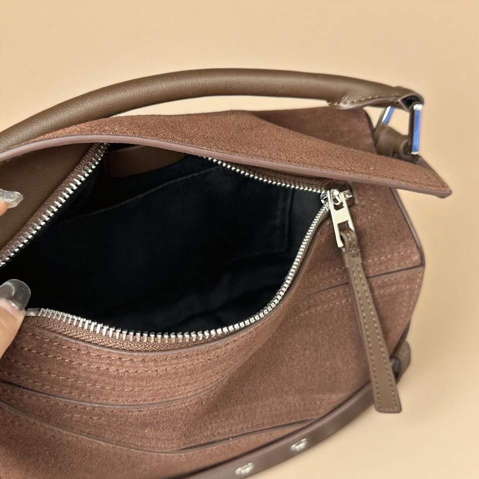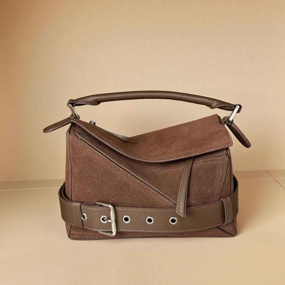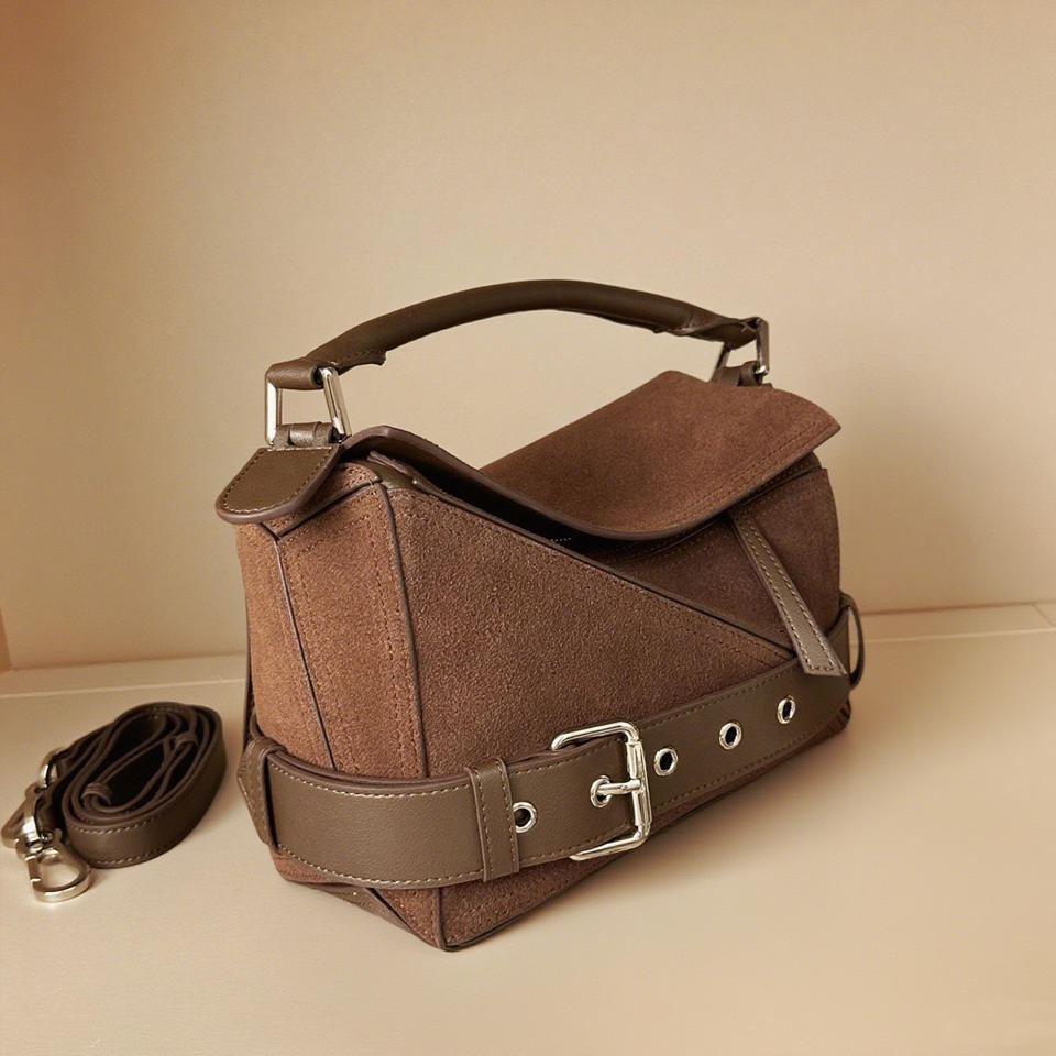 กระเป๋าถือผู้หญิงรุ่นใหม่ปี 2025 ดีไซน์หรูหราสไตล์เรโทร หนังกลับ กระเป๋าสะพายไหล่ผู้หญิง ลายเรขาคณิต กระเป๋าหนังทรงหมอน
