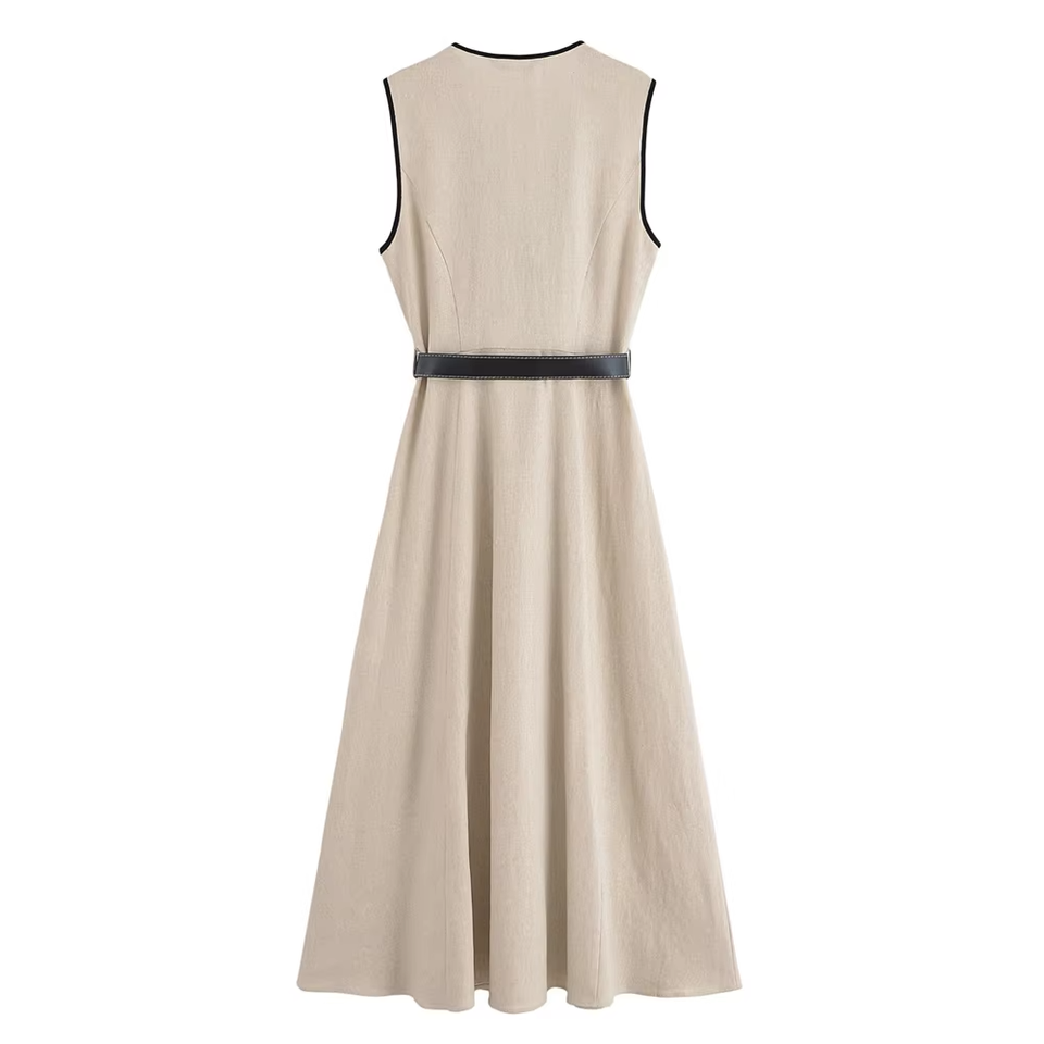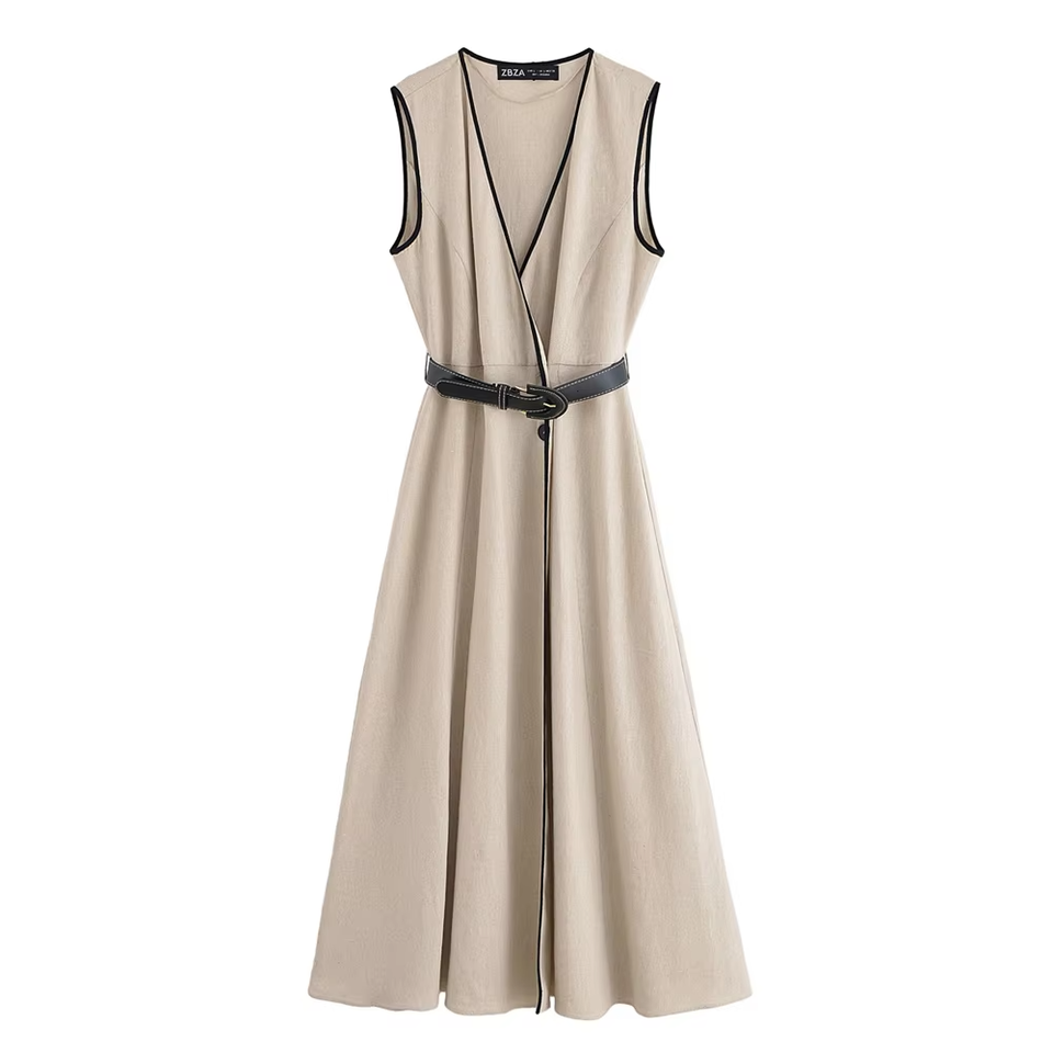เดรสแขนกุดสำหรับผู้หญิง, เดรสลำลองดีไซน์หรูหราสไตล์ยุโรปอเมริกันและใหม่2025