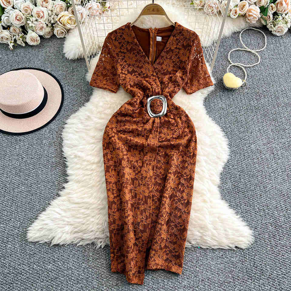 ชุดเดรสลำลองสำหรับผู้หญิงปี 2025 ความยาวระดับเข่า ผ้าทอธรรมชาติ รักษ์โลก สำหรับงานเลี้ยงอาหารค่ำ คอวี แขนสั้น ทรงเอ