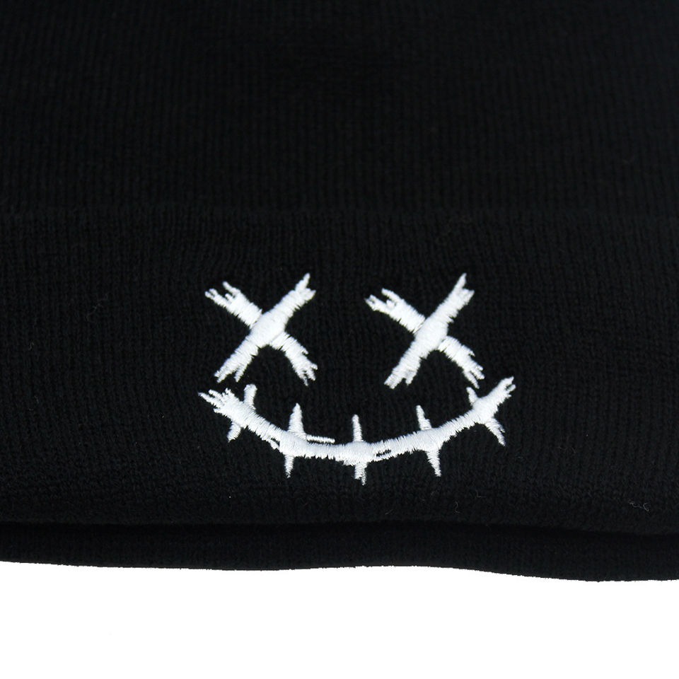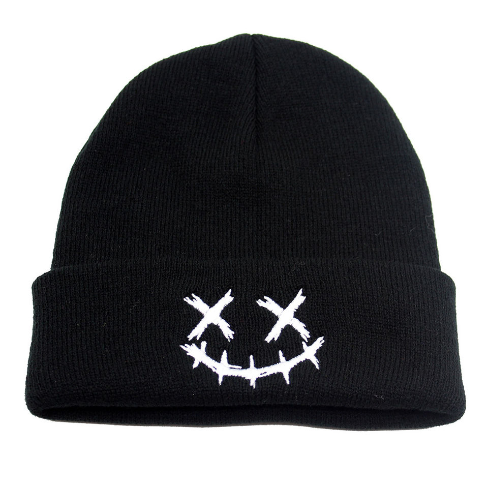 หมวกถักขนสัตว์ใหม่2025สำหรับผู้ชายและผู้หญิงหมวกบีนนี่อบอุ่นปักลายหน้าผีสำหรับ3D ธุรกิจผ้าแจ็คการ์ดสำหรับคู่รักนักศึกษา