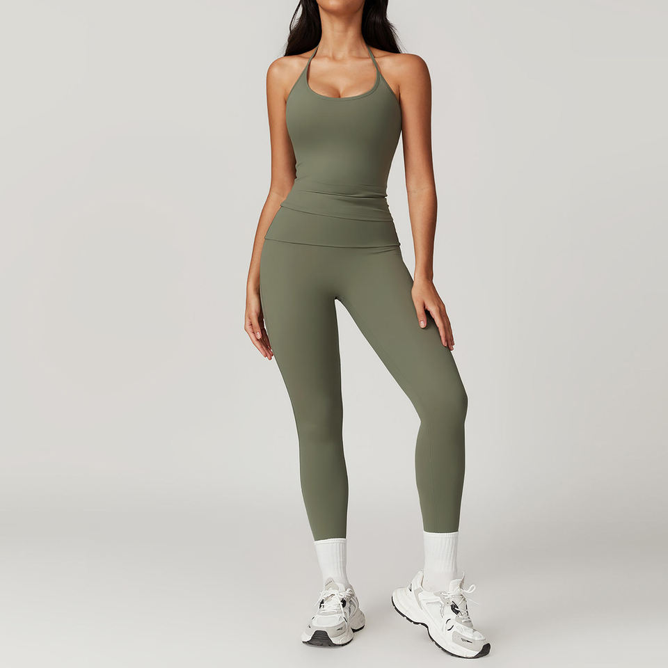 2025 New Workout Set Halter Vest Scrunch but Legging Sports Top Wear Fitness Tracksuit Outfit Biker Pant Jogger Sport Toga Set Scrunch butt, leggings for women